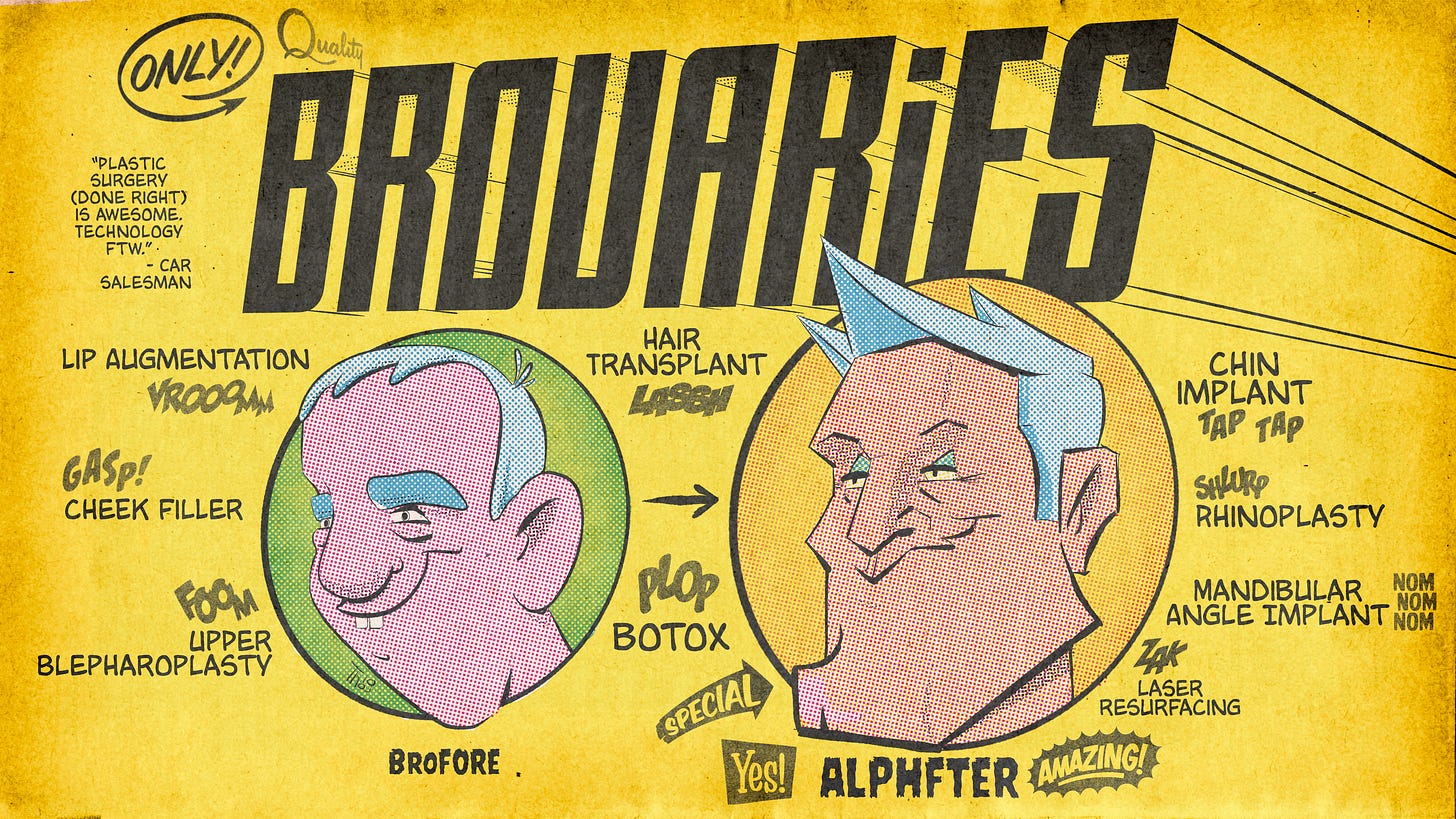 You need BROTOX™™™ — the revolutionary injection that lifts your moobs, tightens your insecurities, and freezes your face into the expression of a man who once read The Game and never emotionally recovered.