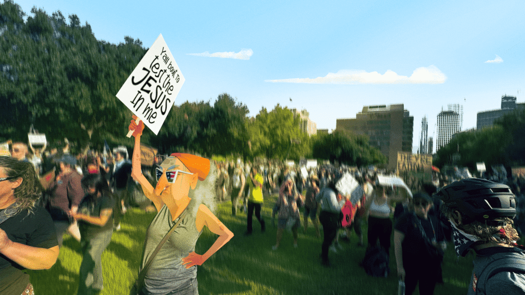 Protest becomes Sonic tailgate. Full-volume, the choir starts singing Old Town Road by Lil Nas X.
